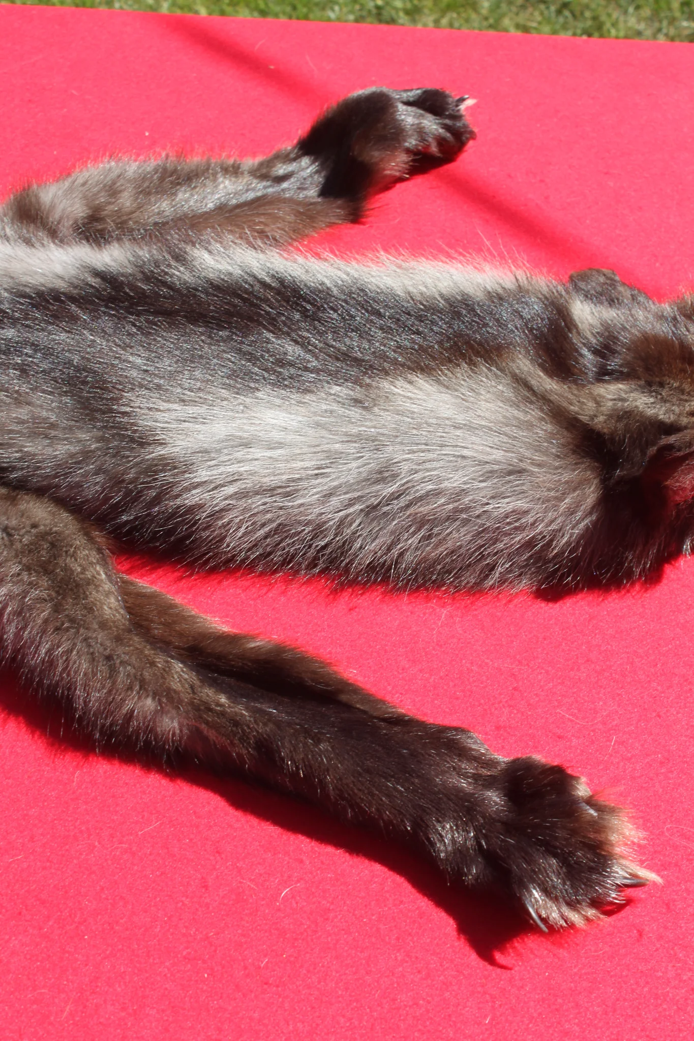 Item WLF1006 is a high-quality, heavily furred black Canadian wolf hide with excellent preparation, clean leather, and strong mounting potential. A rare and desirable piece suitable for professional taxidermy work or serious collectors seeking premium-grade material.