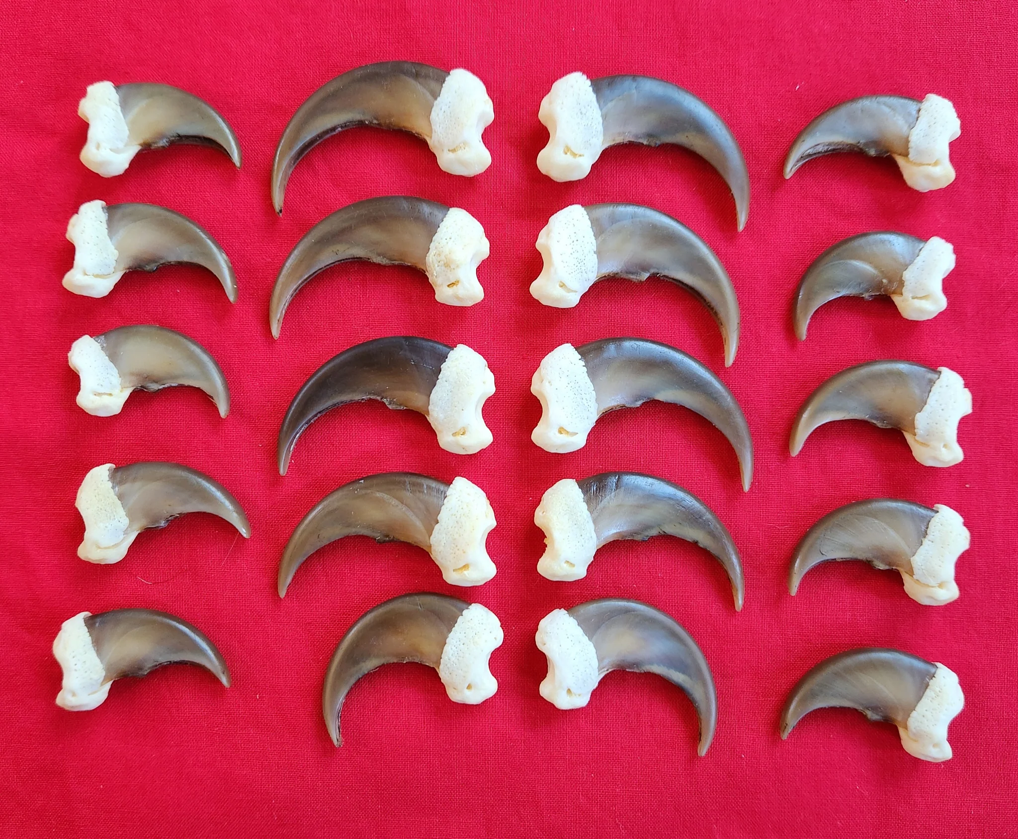 This XXXL Black Bear Claws Set is a premium, museum-quality offering, ideal for collectors, craftsmen, jewelers, and taxidermy professionals seeking large, authentic specimens. The set consists of a complete matched group of 20 claws, all taken from the same bear, ensuring uniformity in size, shape, and coloration.